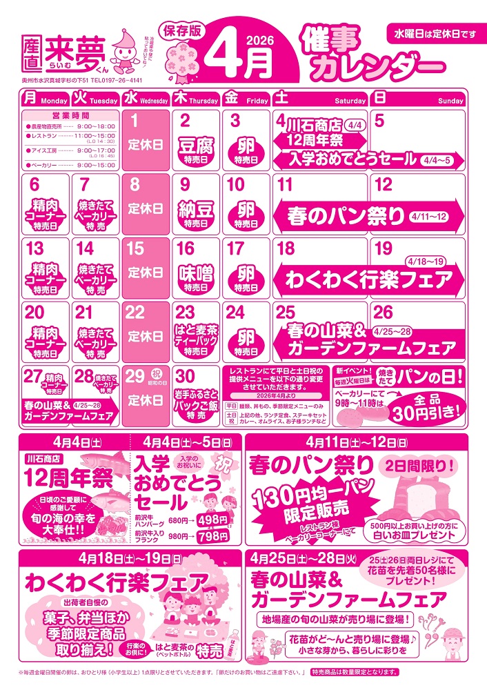 3月17日〜23日までは春彼岸!3月18日は本来、産直来夢くんは定休日ですが、